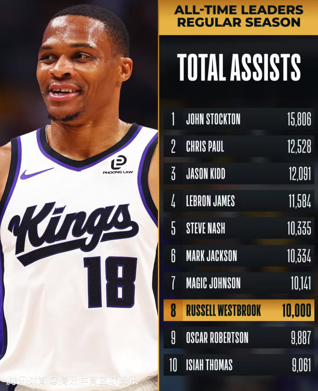 历史第八人!威少助攻达万次 与詹姆斯共享25000分+10000助专属纪录