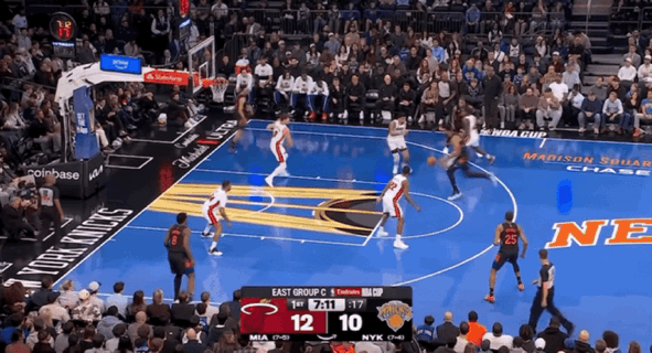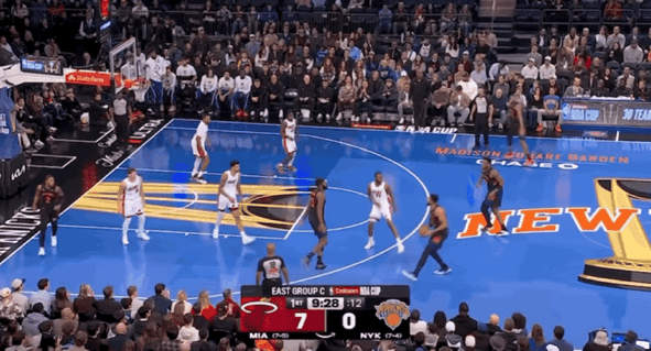 本场比赛尼克斯缺少主力核心布伦森,因此球队进攻重任必然会落在唐斯身上。首节比赛,尼克斯稍显慢热被热火打出7-0的开局高潮,唐斯迅速为球队挺身而出,连续飙进三分还以颜色。唐斯引领球队多点开花,成功实现比分反超。