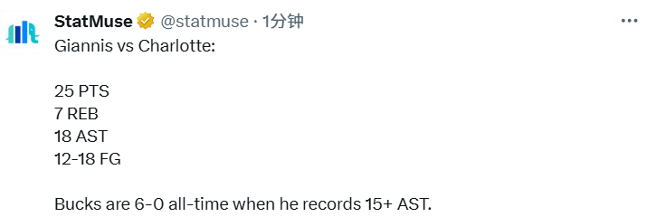 除了哈姆之外,雄鹿队当家球星字母哥此役得到25分7篮板18助攻,根据数据统计显示,当字母哥能送出15+助攻时,雄鹿队的战绩为6胜0负。库兹马此役17投11中得到29分,创个人雄鹿生涯得分新高。