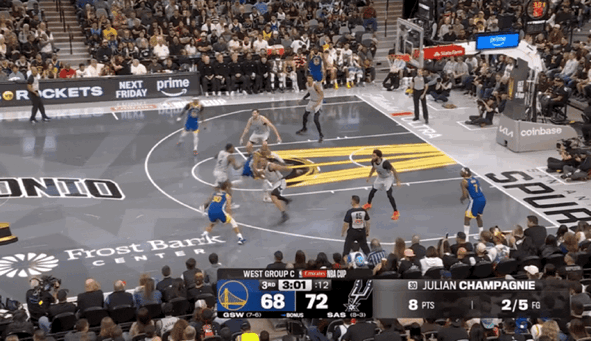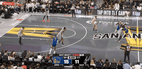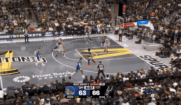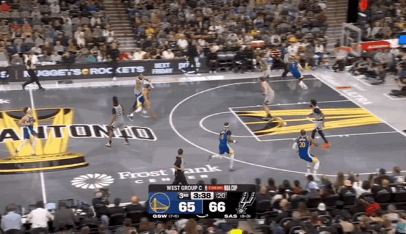 但后续勇士进攻断电,长达3分50秒一分不得,被马刺抓住机会打出一波9-0高潮反超比分,勇士在首节比赛落后马刺2分。