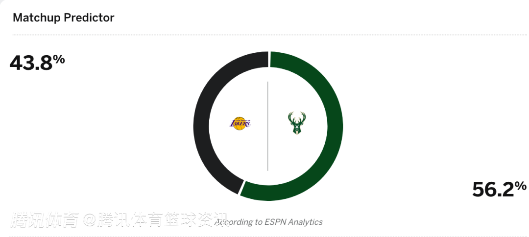 湖人43.8%,雄鹿56.2%