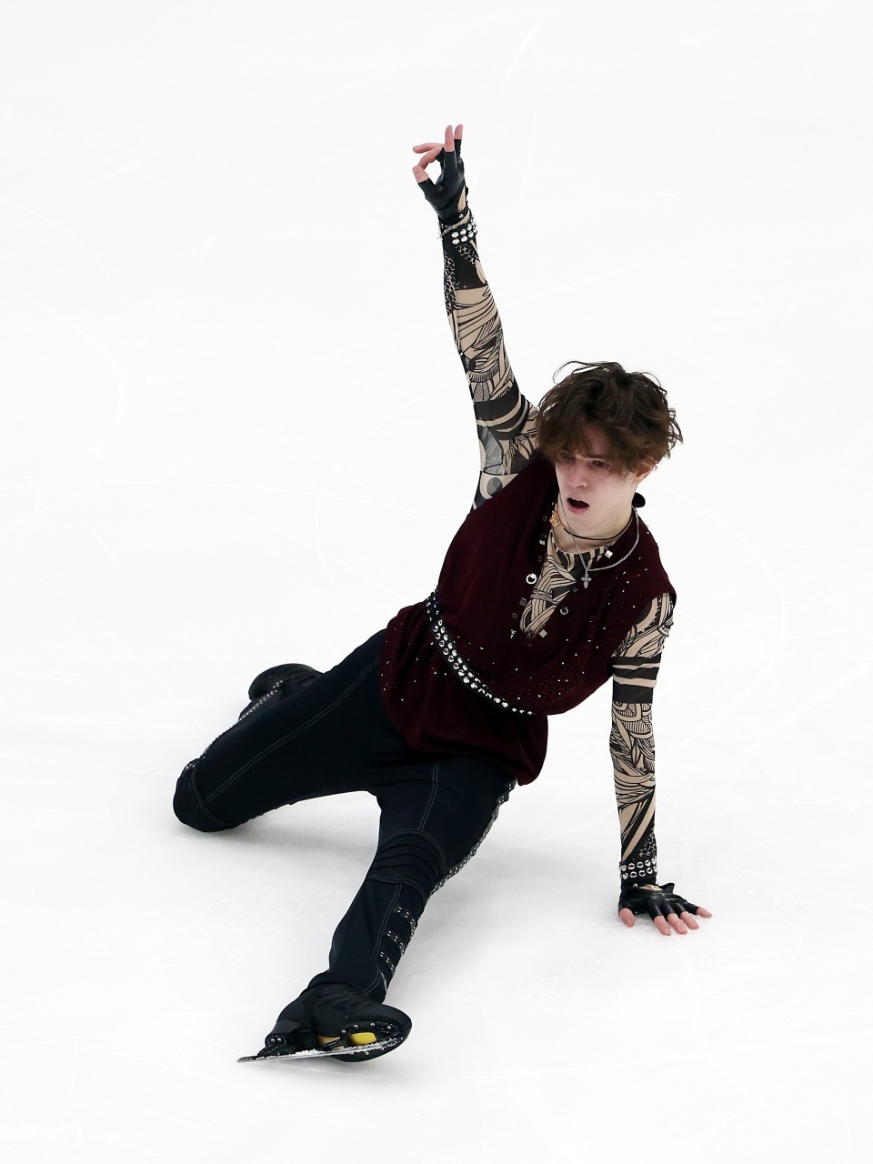 日本老将友野一希的发挥非常突出,后外点冰四周接三周、后内结环三周、阿克塞尔三周都很顺利;虽然音乐曲风另类,但动作设计与音乐配合很到位,也非常适合个人滑行风格,技术52.69/节目内容43.08,合计95.77排在第一。