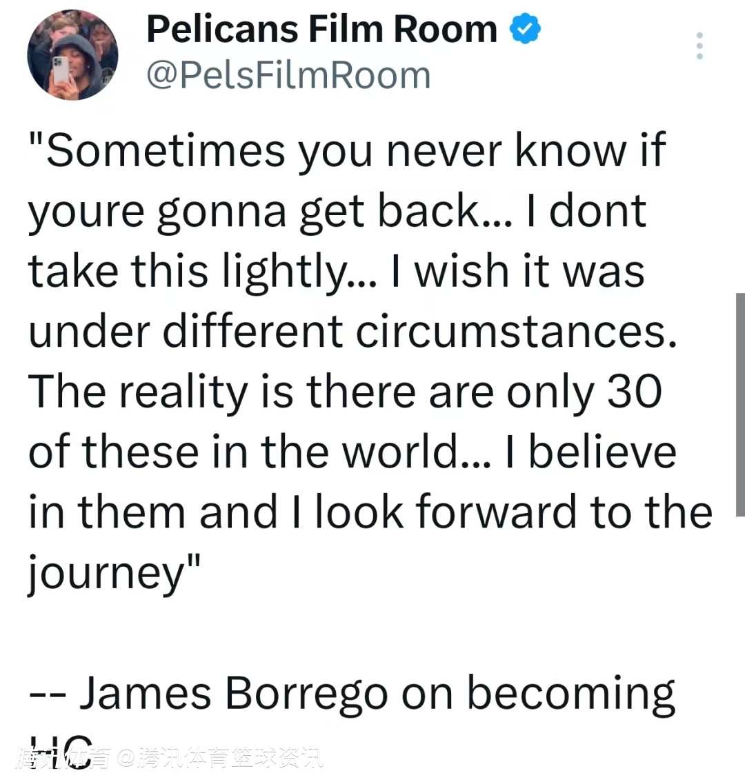 谈到出任临时主帅一职,博雷戈表示:“有时候你真的不知道自己能否重返这个岗位,我对此无比珍视,真希望是以另一种方式回归。但现实是,全联盟只有30个主教练职位。我信任这支球队,也期待这段新征程。”