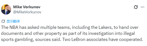 NBA非法博彩调查推进:湖人等队被要求提交材料 詹姆斯团队两人配合调查