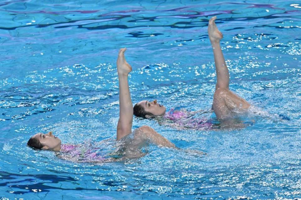 北京体育大学队的樊家懿/郭思彤浮力控制不错,髋部都保持在高水位;必做动作偶尔会出现一些重心上的晃动,动作与主题“借光而生”,难度36.70/得分278.5834。