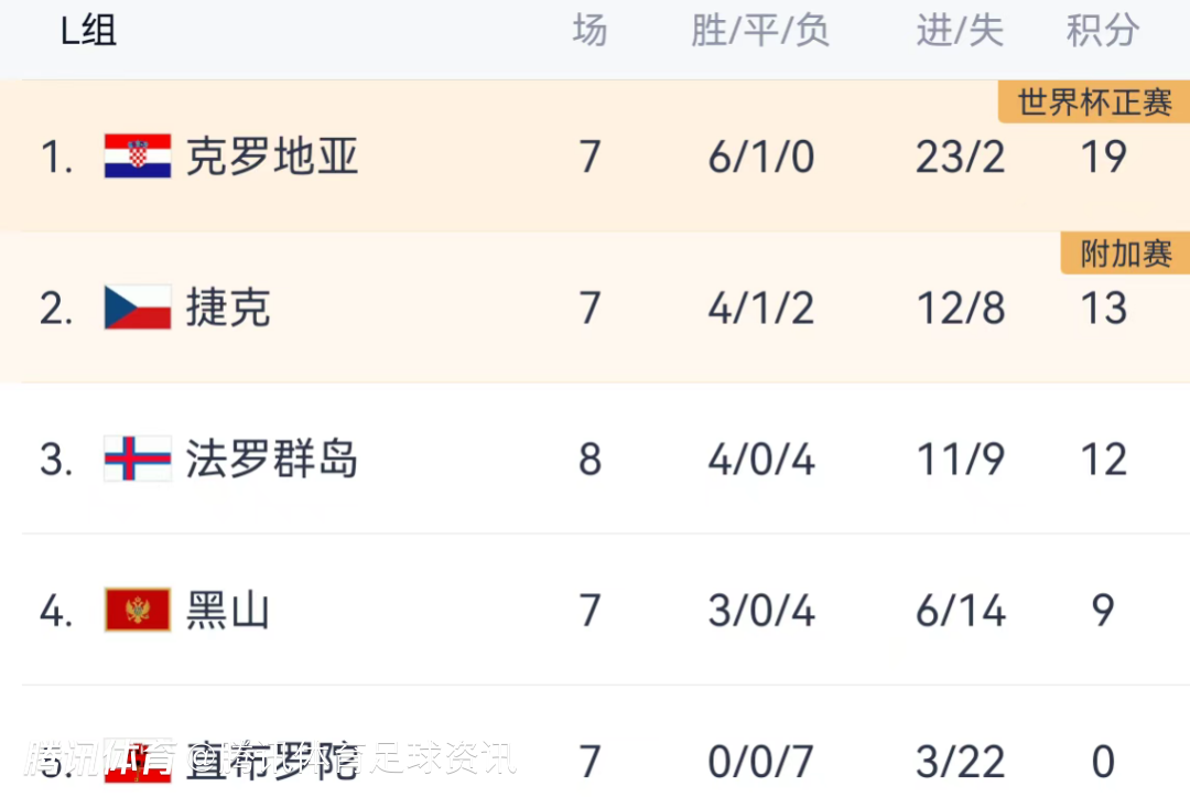 2025-11-16 10:30北京时间11月16日,世预赛欧洲区小组赛L组第9轮,法罗群岛1-3客负克罗地亚,8场小组赛结束后已确定无法进入前二,无缘2026美加墨世界杯。