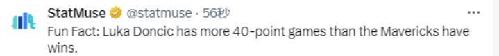 东契奇本赛季第4次砍40+!媒体调侃:他的40+次数比独行侠胜场还多