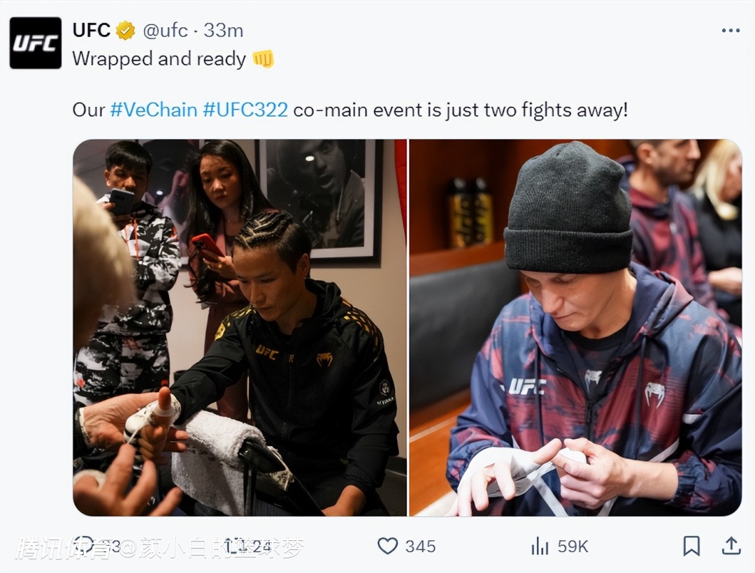 张伟丽与子弹姐进行了绑手后换上比赛服都进入了八角笼。