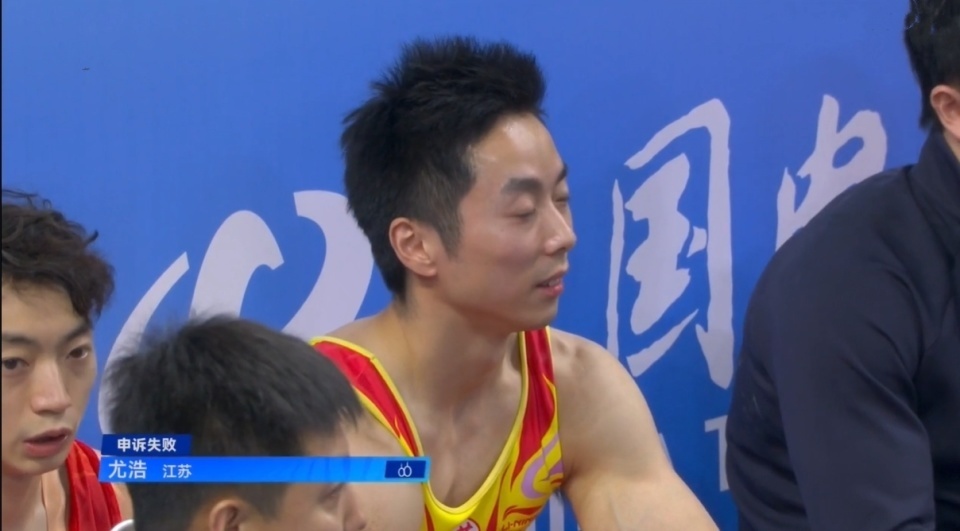 在刘洋完成动作期间,尤浩对难度进行了申诉,但没有成功。
