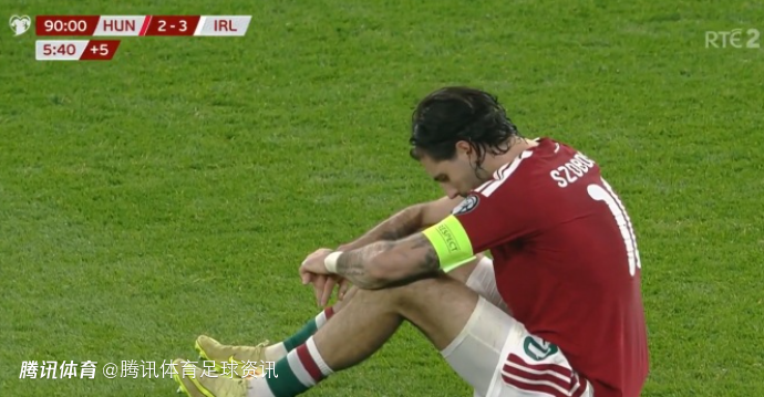 而输球后,匈牙利队长索博斯洛伊无奈垂头,瘫坐在草地上。