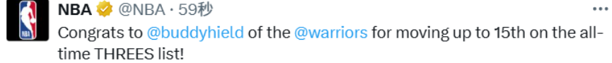2025-11-17 09:30北京时间11月17日,NBA常规赛继续进行,勇士队对阵鹈鹕队。上半场比赛结束,勇士队61-49领先12分。希尔德在上半场出战9分钟,4投3中得到8分1篮板1助攻2抢断,他还投中2记三分球,迎来生涯里程碑。