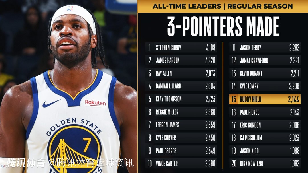 2144记三分球!希尔德超皮尔斯 升至NBA历史三分榜第15位