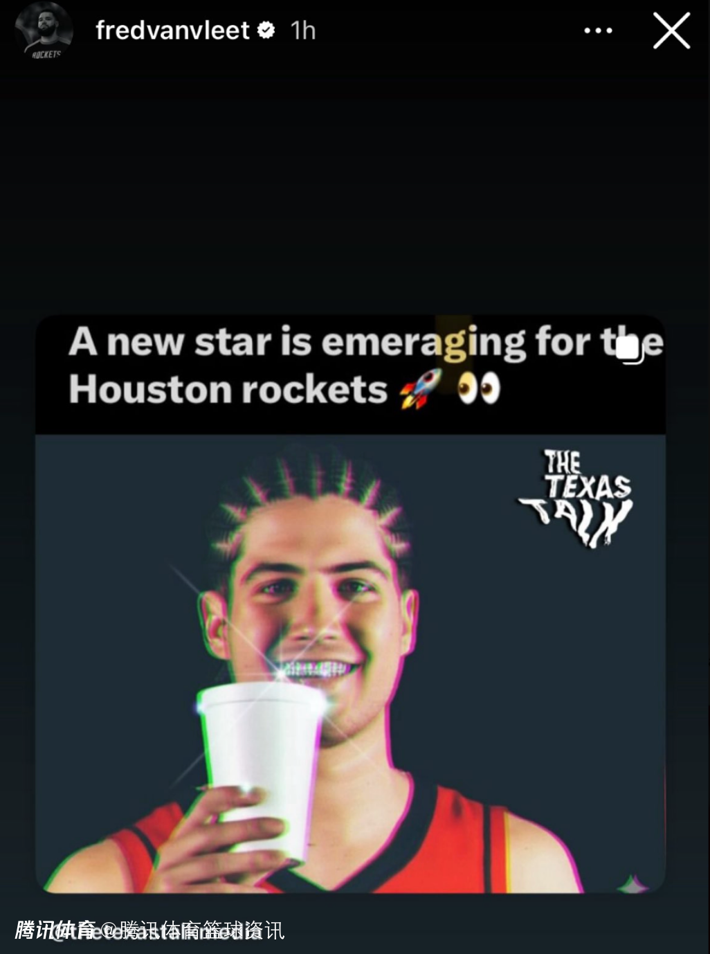 2025-11-17 13:30北京时间11月17日,范弗利特更新个人社媒,转发了谢泼德近期的数据,并且配文写道:“休斯顿火箭正在崛起一位新星。”随后他还转发了自己身穿便装和谢泼德坐在一起的照片。