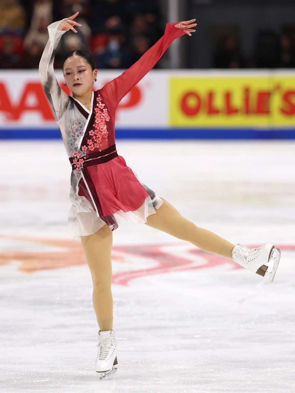 从跳进燕式旋转开始,强劲鼓点加入,但后半段的整体衔接不够饱满;她本赛季两套节目都太过流行,缺乏足够变化以及情绪深度,技术71.22/节目内容69.32,自由滑140.54,总分214.27拿下冠军,加上中国杯银牌,积28分如愿挺进总决赛。