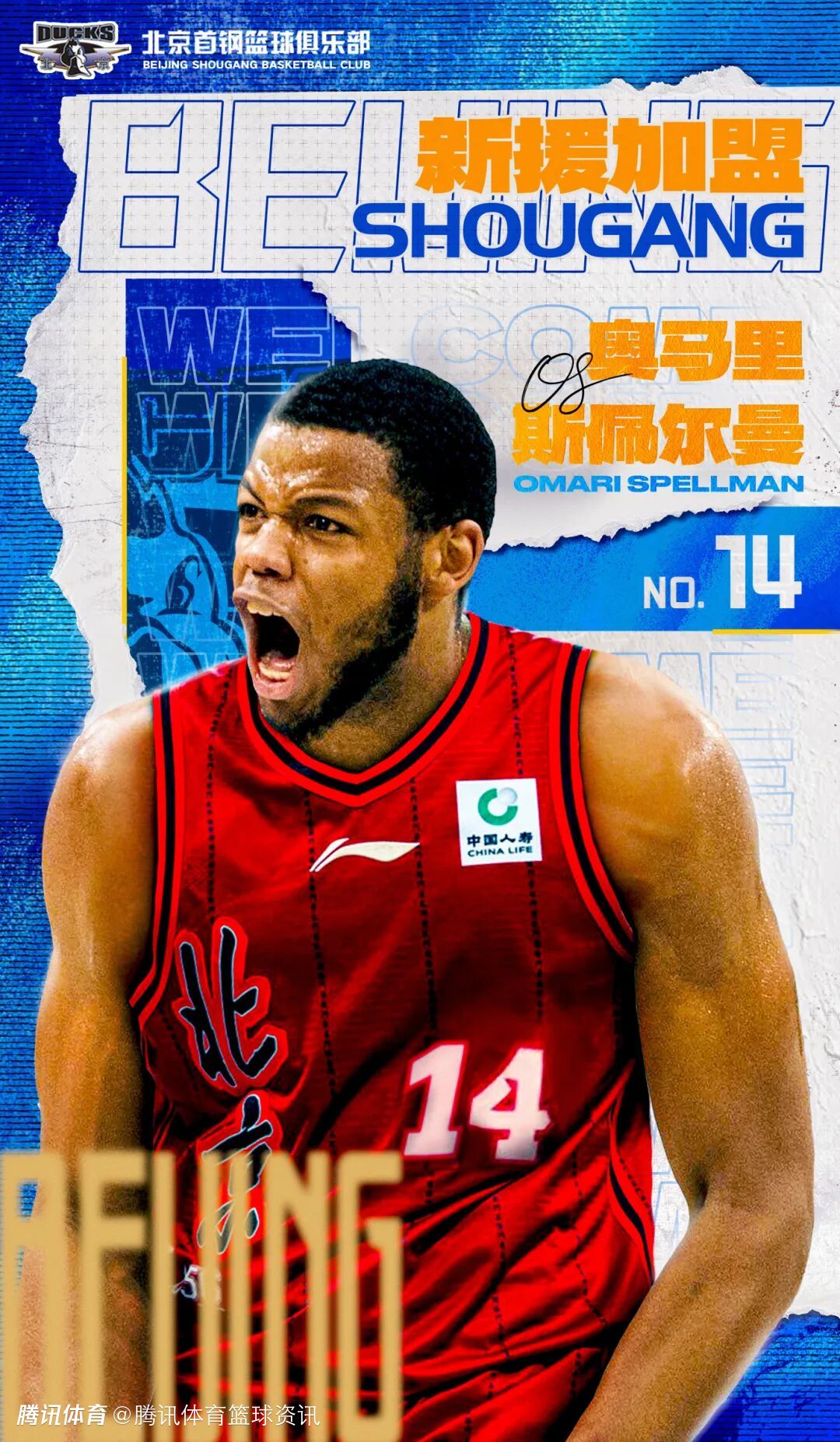 今日,北京首钢篮球俱乐部男女篮外援正式集结。北京北汽男篮与奥马里-斯佩尔曼(Omari Rasulala Spellman)完成签约,这位兼具国际赛场经验与美式对抗强度的大前锋,不仅补强了球队内线实力,更为球队冲击最高荣誉注入强劲动力。