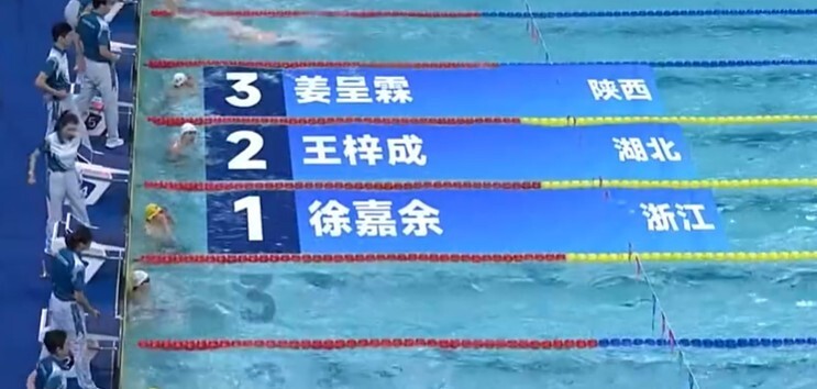浙江队徐嘉余以24秒40的成绩获得了金牌,湖北队的王梓成24秒80获得了银牌,陕西队的姜呈霖25秒01获得铜牌。