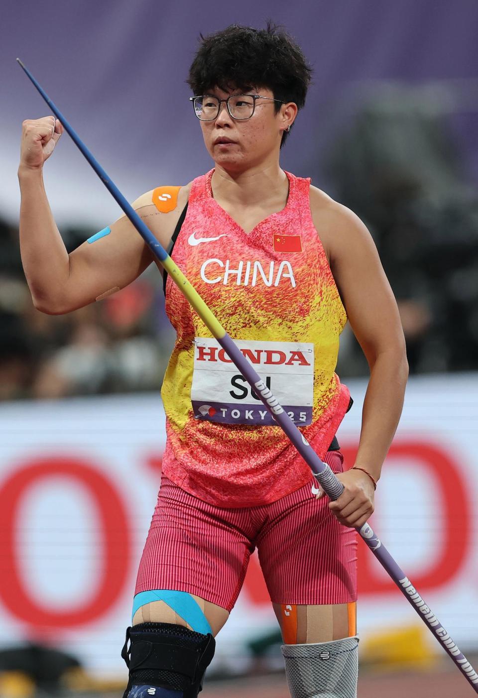 女子标枪决赛,28岁的湖北选手苏玲丹以62米42强势夺冠,这是湖北田径首次夺得该项目全运会金牌。36岁的湖北老将吕会会以60米67获得银牌,浙江的戴倩倩以60米11获得铜牌。浙江新秀严子怡因为没有年满18周岁未能获得参赛资格,严子怡本赛季5次投出超过64米的好成绩,等明年5月她年满18周岁以后这个项目就是严子怡的天下了。