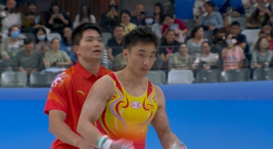 2025-11-17 23:00第十五届全运会竞技体操进入最后一个比赛的角逐:在男子单杠决赛里,湖南名将张博恒不负众望,以14.86的高分拿下冠军!