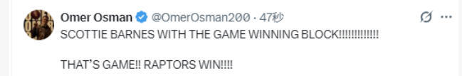 制胜盖帽!巴恩斯最后0.2秒封盖塞克斯顿 猛龙惊险击败黄蜂