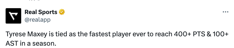 这样一来,马克西成为NBA 历史上并列最快达成单赛季400+得分100 +助攻的球员;另外本赛季马克西35+的得分场次(5次)仅次于东契奇(6次),这也是他本赛季第七次拿到30+5(助攻)的数据。