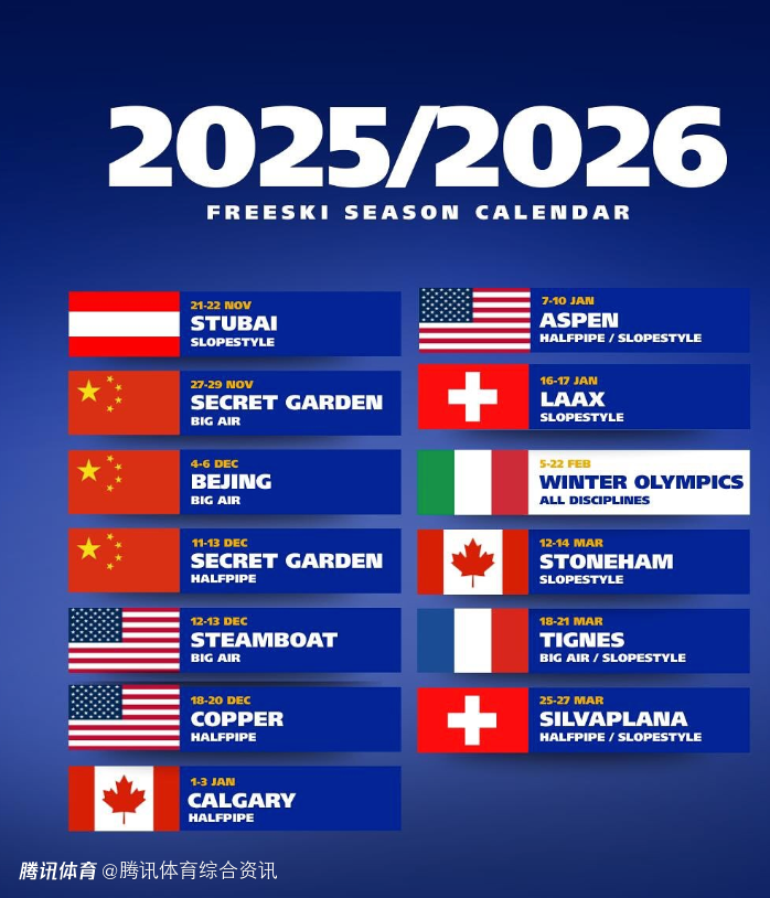 2025-11-18 13:20北京时间11月18日,25-26赛季自由式滑雪坡面障碍技巧世界杯即将拉开帷幕,11月21日奥地利施图拜将率先上演坡面障碍技巧对决,这也是未来五个月内五站赛事的开篇之战。