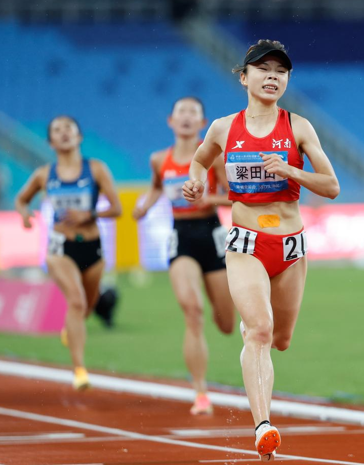 女子5000米决赛,来自河南的梁田田以15分09秒85夺冠,获得个人全运会的首枚金牌。云南选手罗霞以15分11秒39摘得银牌,四川选手何巫呷以15分11秒80获得铜牌。江苏旅日选手牛佳慧以15分43秒26刷新赛季个人最好成绩获得第9名。