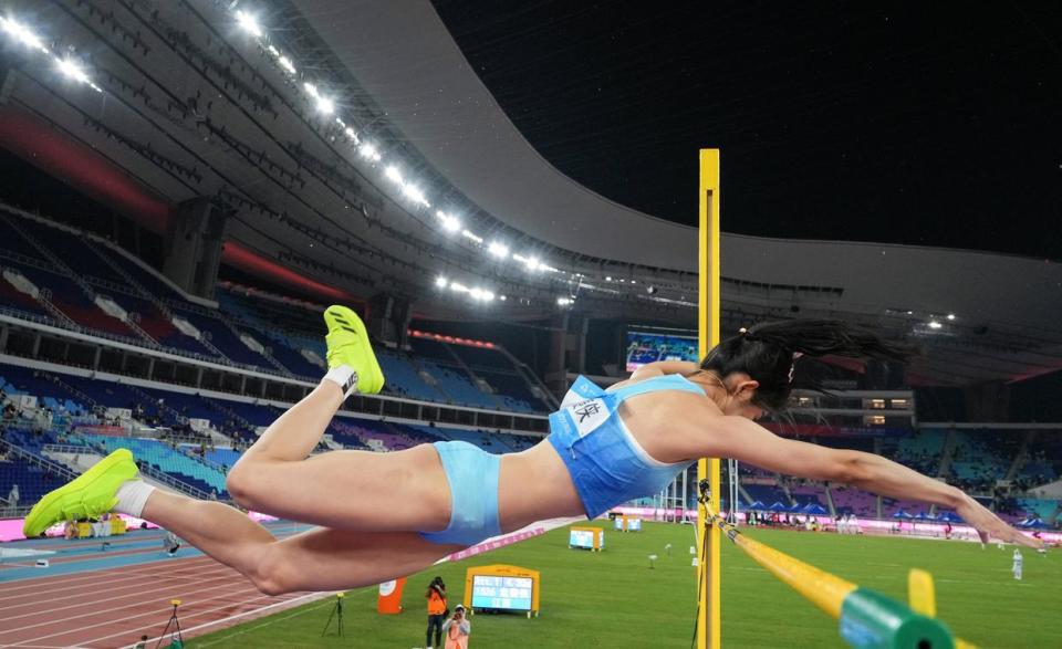 女子撑竿跳高决赛,江西的危菱侠以4米30夺冠,四川的杜睿以同样的4米30刷新PB获得银牌,安徽的张子璇以4米15获得铜牌。浙江36岁老将、4米72的亚洲纪录保持者李玲,以4米15获得第四。
