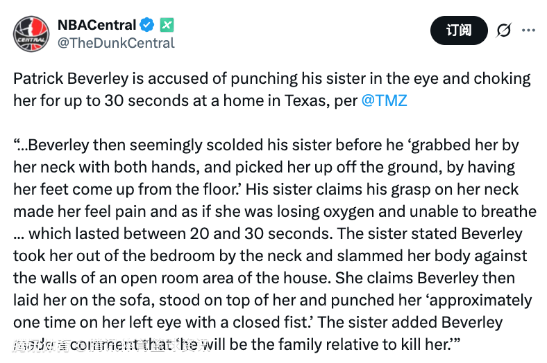 家暴的竟是自己亲妹妹!贝弗利放话:我会成为杀死你的家人