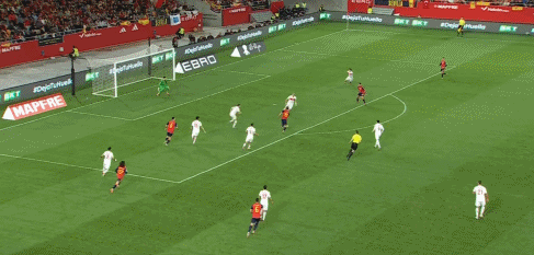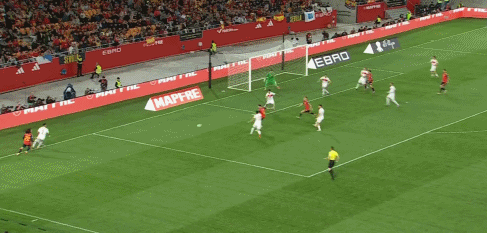 第4分钟,库库雷利亚左路传中,前点球员未能停到皮球,奥尔莫扣开防守近距离得手,西班牙完成闪击,1-0。