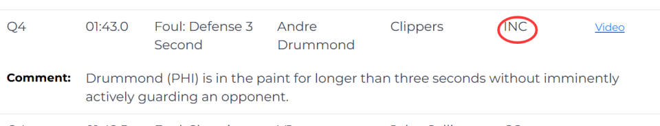 第二次漏判,发生在距离比赛结束还有19.3秒,快船的祖巴茨在没有积极防守对方球员的情况下在己方禁区停留时间超过3秒,这也是一次漏吹的防守三秒违例,快船获利,76人吃亏。
