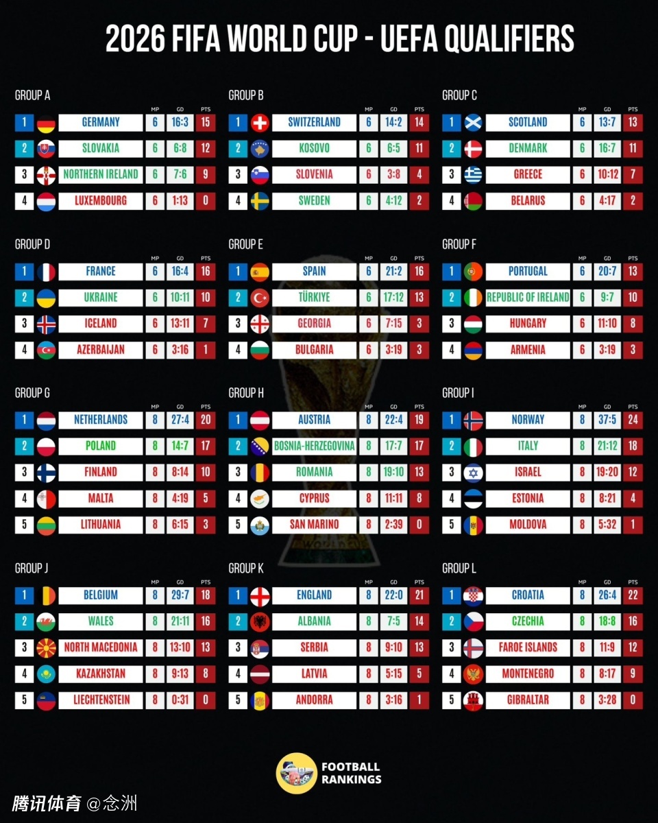 2025-11-19 07:20北京时间11月19日,昨夜今晨,足坛又有新的重大事件发生,西班牙比利时苏格兰晋级世界杯,欧洲区12队直通,16队踢附加赛,亚洲区伊拉克参加洲际附加赛。