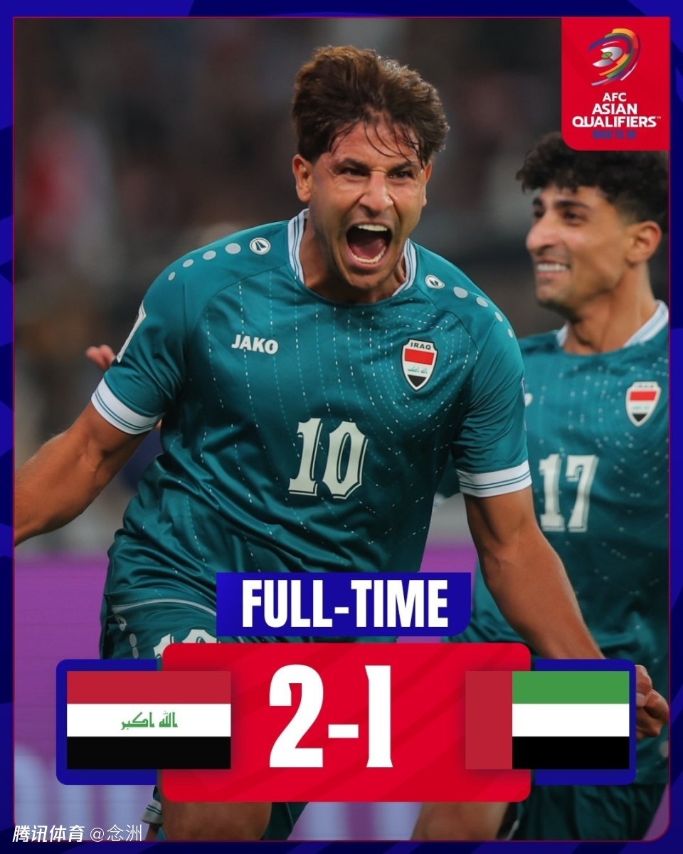 世预赛亚洲区第五阶段,伊拉克凭借比赛补时最后时刻的点球绝杀,主场2-1逆转阿联酋,总比分3-2淘汰对手,晋级世预赛洲际附加赛。
