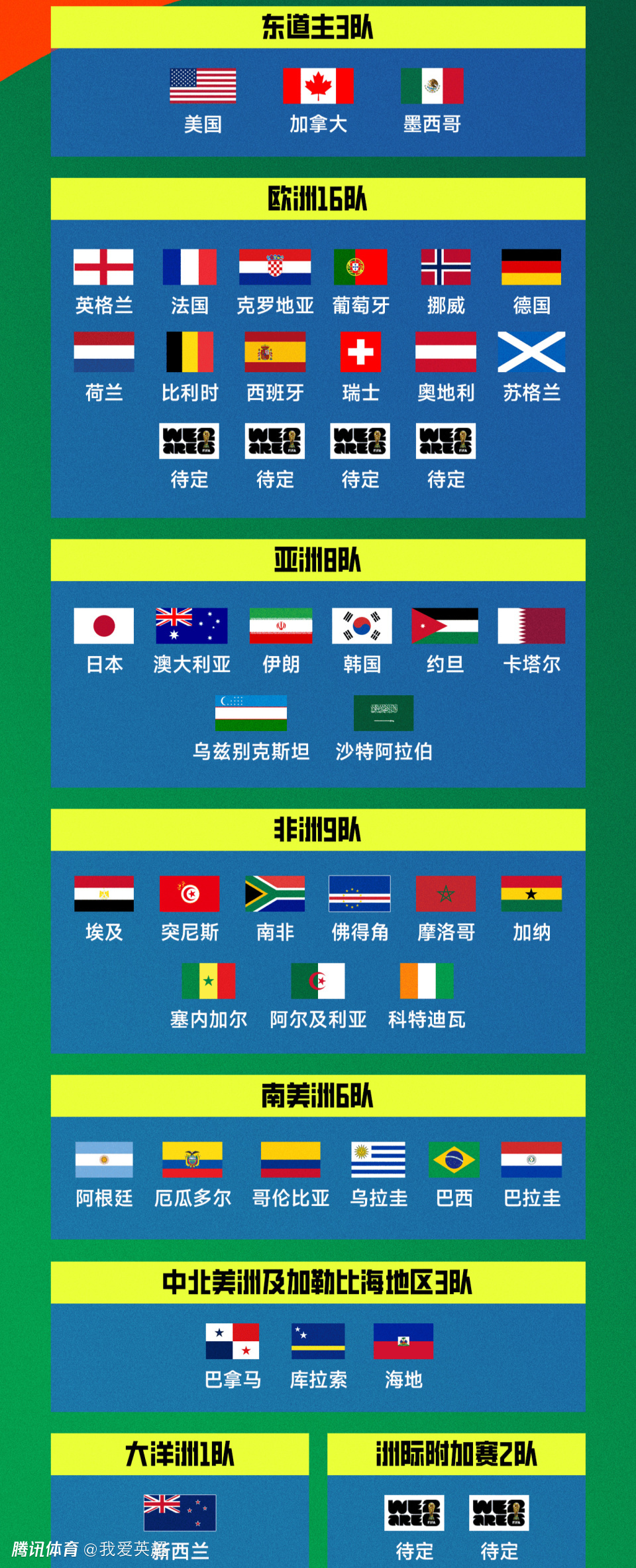 自此,直通美加墨世界杯的42个席位全部出炉。入围球队具体如下