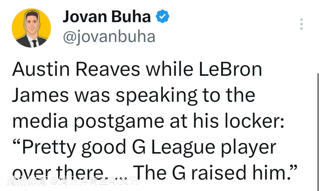 里夫斯调侃詹姆斯:那可是个相当出色的G联盟球员 是G联盟培养了他
