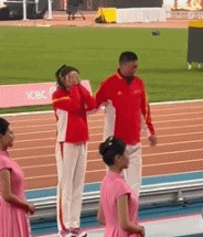 在颁奖典礼上,走上领奖台的吴艳妮双手捂脸哭了起来,接过奖牌之后,吴艳妮继续落泪,长时间不断抽泣,一旁的教练拍了拍她,试图安慰吴艳妮。