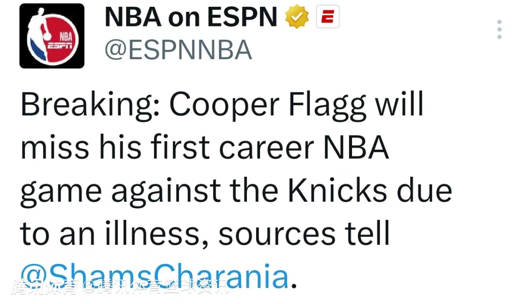 2025-11-20 08:10北京时间11月20日,名记Shams在直播节目中透露,因身体不适,独行侠新秀库珀-弗拉格将缺席今天主场对阵尼克斯的比赛。