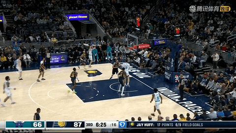 易边再战,步行者继续发力。第三节还剩8分49秒时,杰-赫夫接内姆布哈德传球双手暴扣得手。紧接着在还剩8分25秒时,他再飚中三分。高潮出现在第三节还剩6分16秒时,杰-赫夫弧顶三分再落网,场上比分定格在90比66,步行者领先达到24分。
