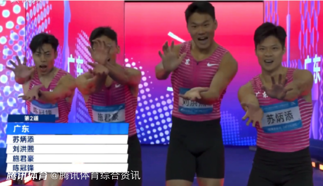 预赛中他们以39秒22位列小组第三,未能直接晋级(小组前两名直通)。通过对比其他小组非前两名队伍的成绩,广东队以“两个最好成绩第三”中排名较低的身份(总成绩第八)压线递补晋级决赛。队友透露苏炳添赛前仍到场热身,为团队加油鼓劲。