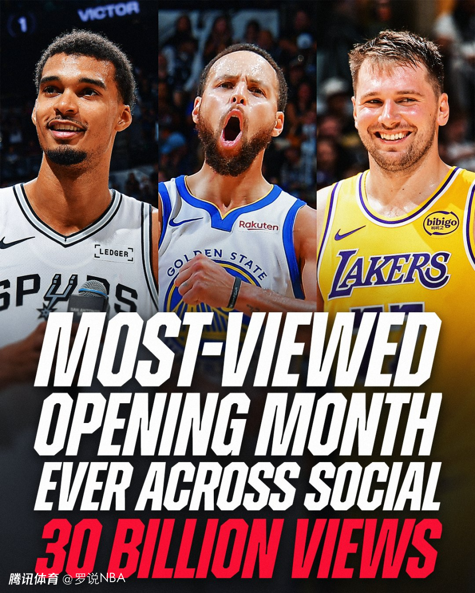 NBA开季首月破15年纪录!观众总数超6000万 播放量突破300亿