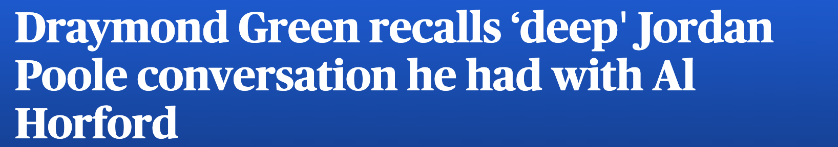 追梦 坦言,即便自己早已多次解释过与普尔的冲突并翻篇,但球队外部仍有人对他在更衣室的领导力心存顾虑 —— 至少是怀有疑问。“所以那场对话后,我心里想‘该死,看来我真得更加专注于团队了。’那次交流太有意义了,能明显感觉到当时在场几人的紧张感瞬间消散,” 格林补充道,“这对我来说是宝贵的一课,如果霍福德没有主动问起,我根本不会知道他们心里是这么想的。”