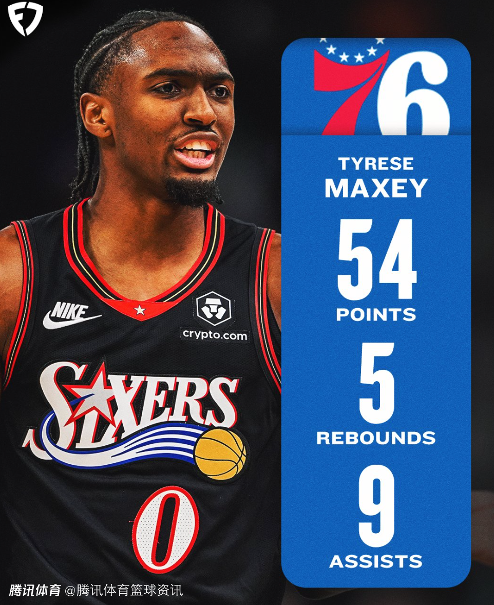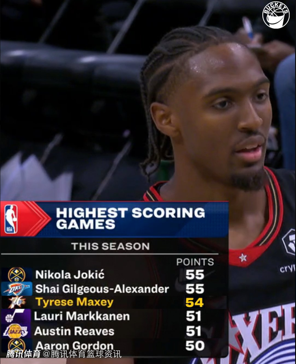 2025-11-21 12:00北京时间11月21日,NBA常规赛,76人通过加时赛,以123-114击败雄鹿,此役马克西拿到生涯新高的54分。他这54分为本赛季单场得分第二高,仅次于约基奇、亚历山大的55分。