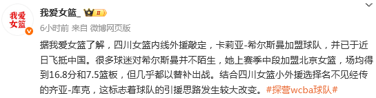 没有坎贝奇&琼斯!四川女篮新赛季阵容配置:希尔斯曼+库克