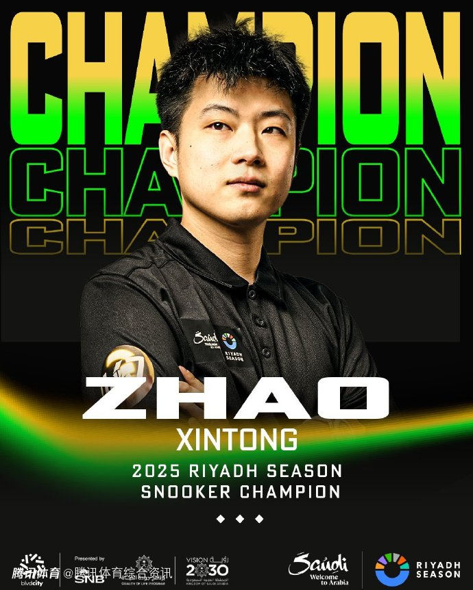 打破7个月冠军荒!赵心童5-2战胜胜罗伯逊 成利雅得锦标赛首位亚洲冠军选手
