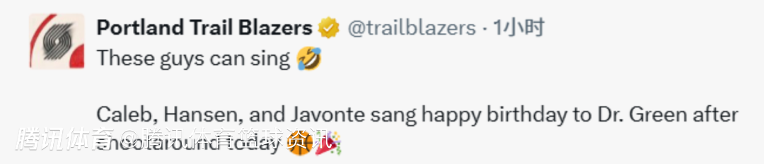 2025-11-22 09:50北京时间11月22日,今天,开拓者心理医生过生日,杨瀚森带头唱起了生日歌,他先是唱了英文版,之后又唱了中文版。