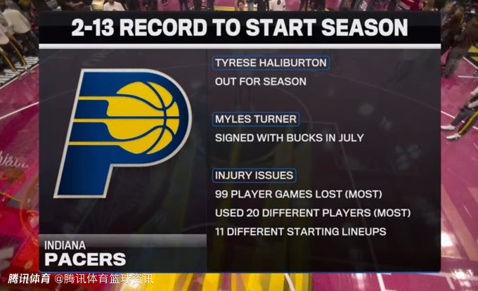 步行者目前正经历伤病危机和阵容动荡,本场比赛开打前,转播方提供数据显示,步行者球员累计缺席99场为联盟最多,已启用20名不同球员同样为联盟最多,球队已轮换11套首发阵容。