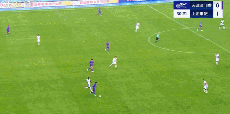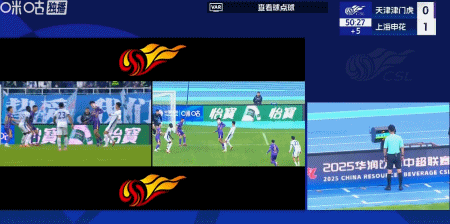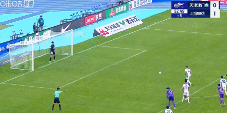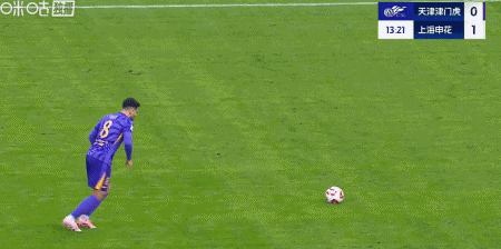 上半场补时阶段,王献钧手球送点、吴曦操刀主罚命中,申花2-0津门虎进入下半场。