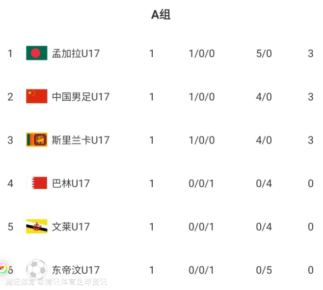 目前积分榜上,中国队以3分位列第2,以净胜球的劣势落后孟加拉U16。