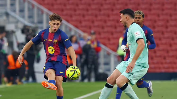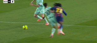 第48分钟,埃里克-加西亚直塞,费尔明单刀球抽射破门,3-0。