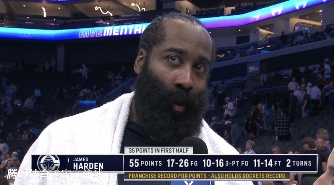 哈登狂飙55+7+10三分!单节轰27分击溃黄蜂 刷爆纪录比肩科比库里