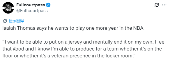 2025-11-23 08:30北京时间11月23日,前NBA球员以赛亚-托马斯在接受采访时表示,他希望能在NBA再征战一个赛季。